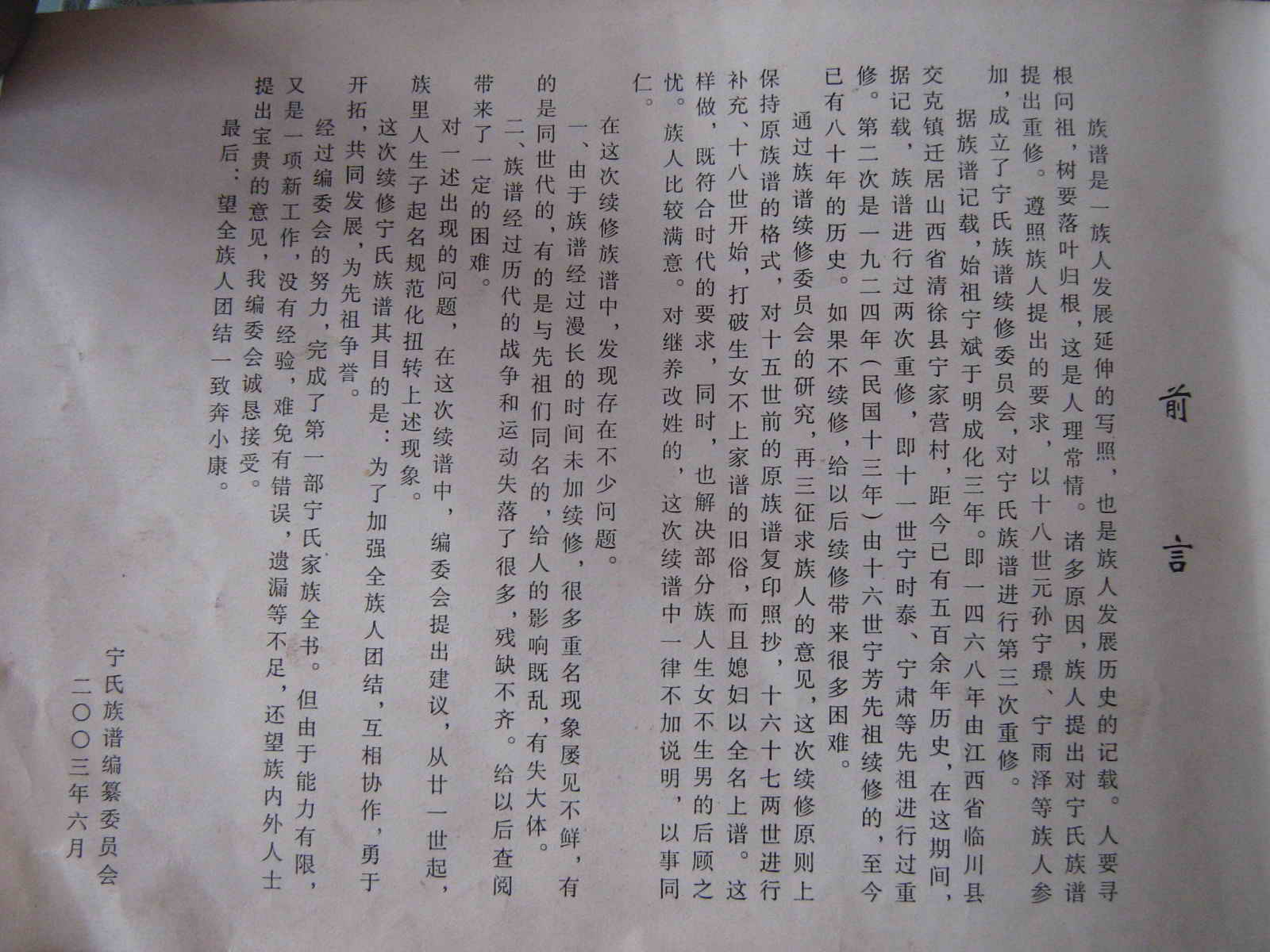 山西清徐甯家营村甯氏族谱